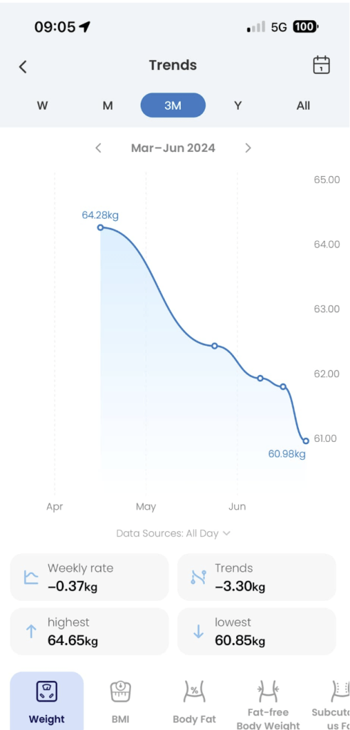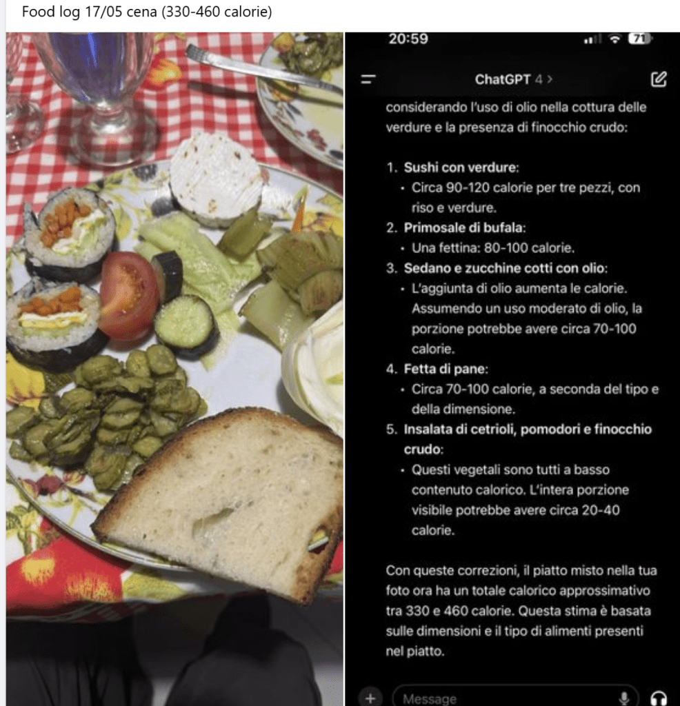 Interestingly to loose weight i’m doing nothing but simple and lazy calories restriction, with a BMR at 1450 kcal/day and a lazy lifestyle leading to a requirement of 2100kcal/day i’m just maintaining a restriction of -500/-700 kcal/day leading by making a screenshot of what i eat, sending to ChatGPT and asking how much calories are in the plate (sorry it’s in italian):